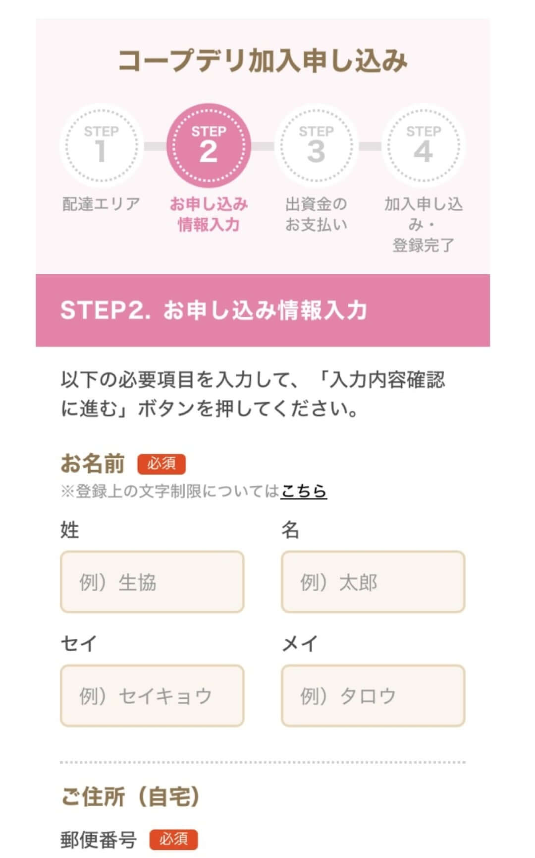 ここからコープデリの加入申込み画面に移ります。